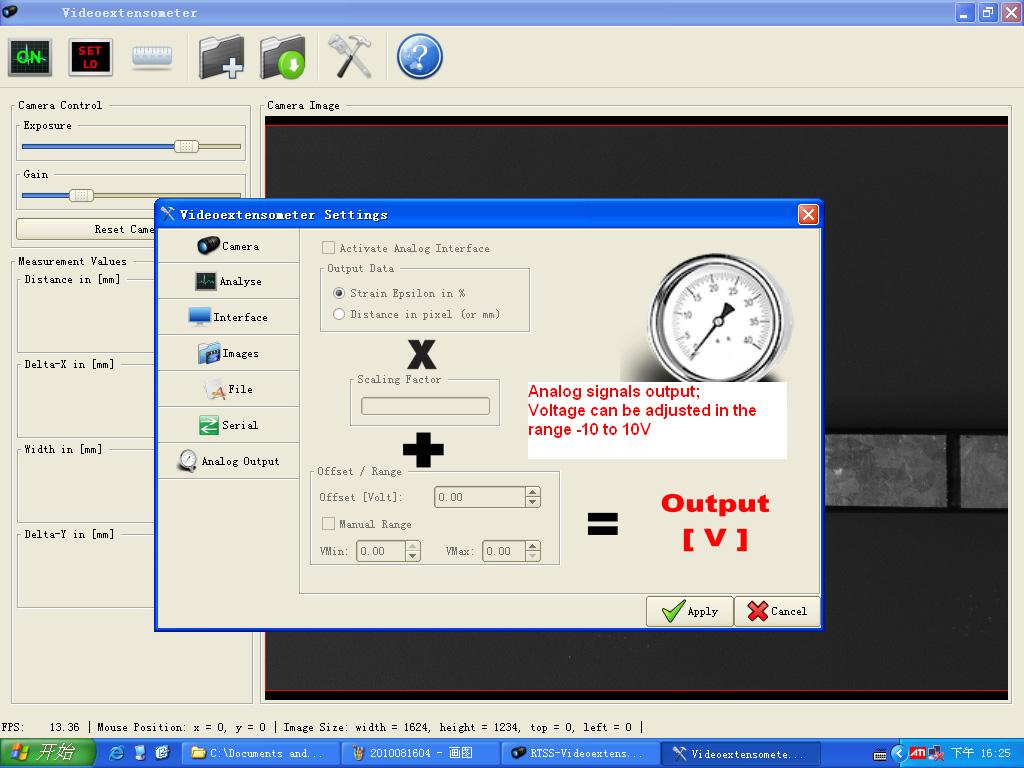 实时应变传感器RTSS是一种非接触式的,基于一台单独的摄像机和实时图像处理的系统,适用于测量两标记线之间的纵向以及横向应变。应变数据通过模拟信号或者数字信号传输到拉伸试验机进行深入处理或者控制。
